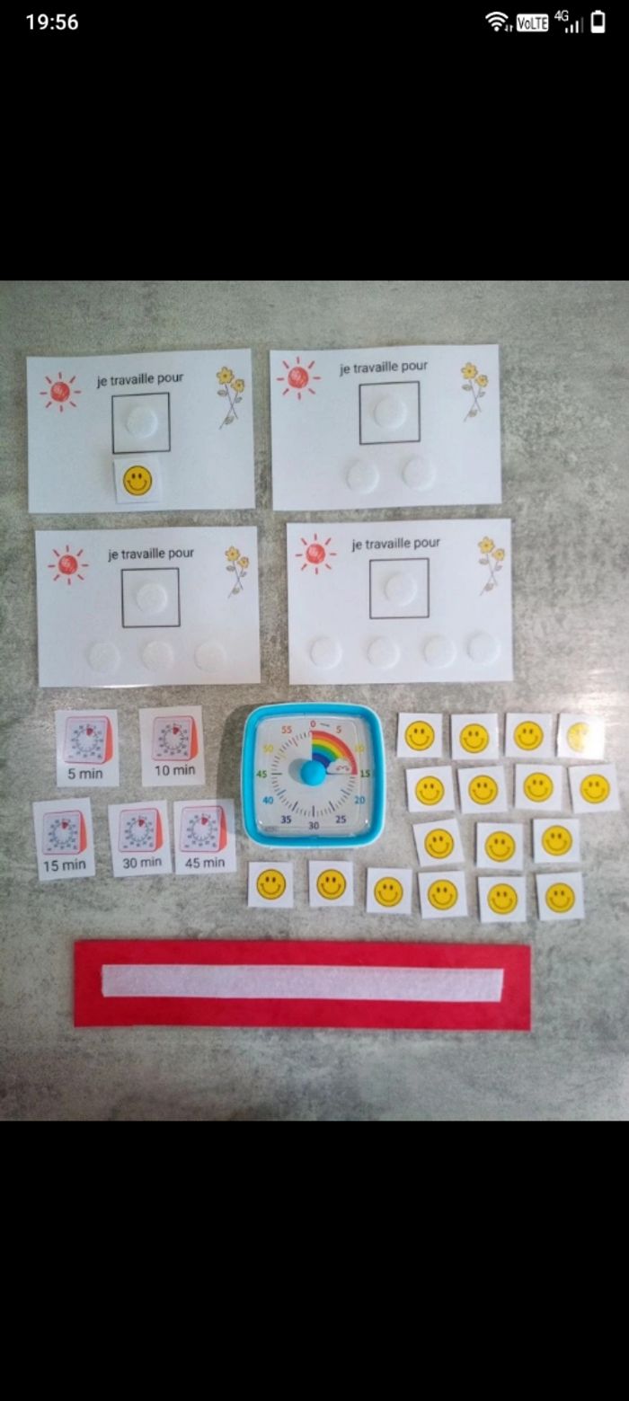 L'enfant choisi l'activité qu'il voudra faire après le travail imposé, une fois la tâche effectué on pose le picto avec le sourire ( un seul travail imposé, puis deux , trois , et quatres quand la patience est acquise 😉)