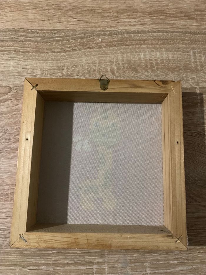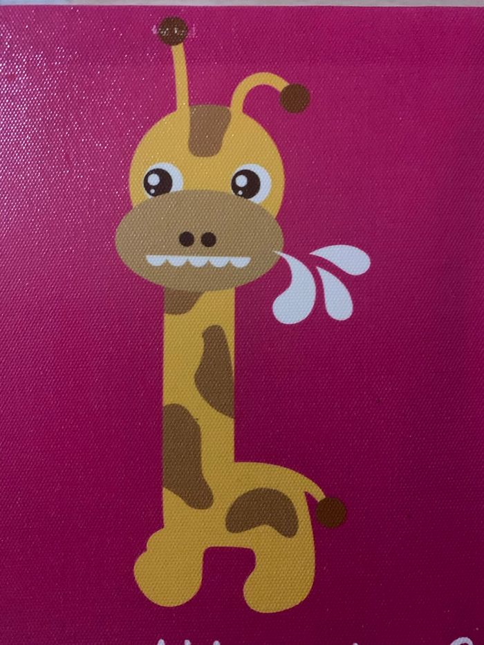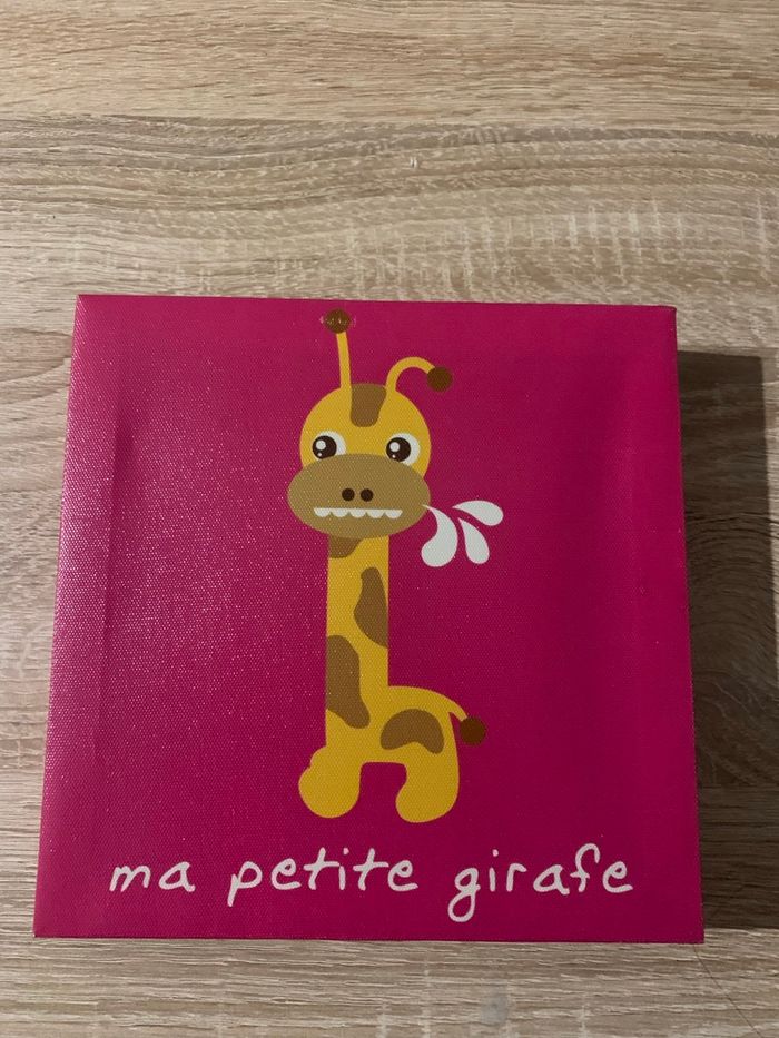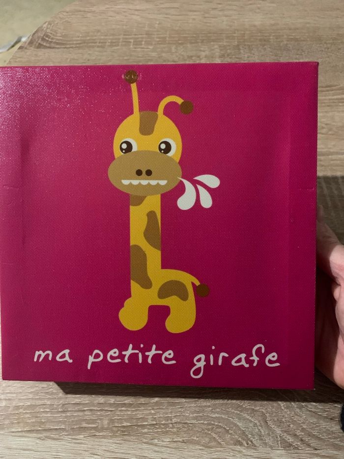 Mesure 20 cm x 20 cm Inscription «  ma petite girafe «  Manque un peu de couleur au niveau d’une corne Envoi rapide et soigné sous protection