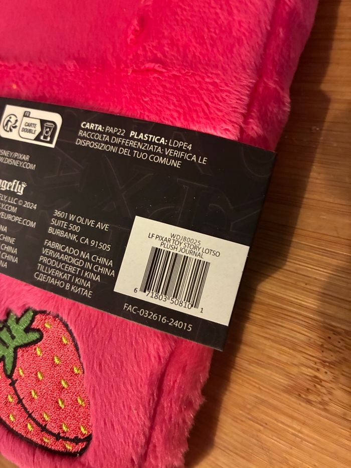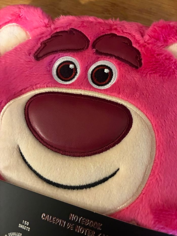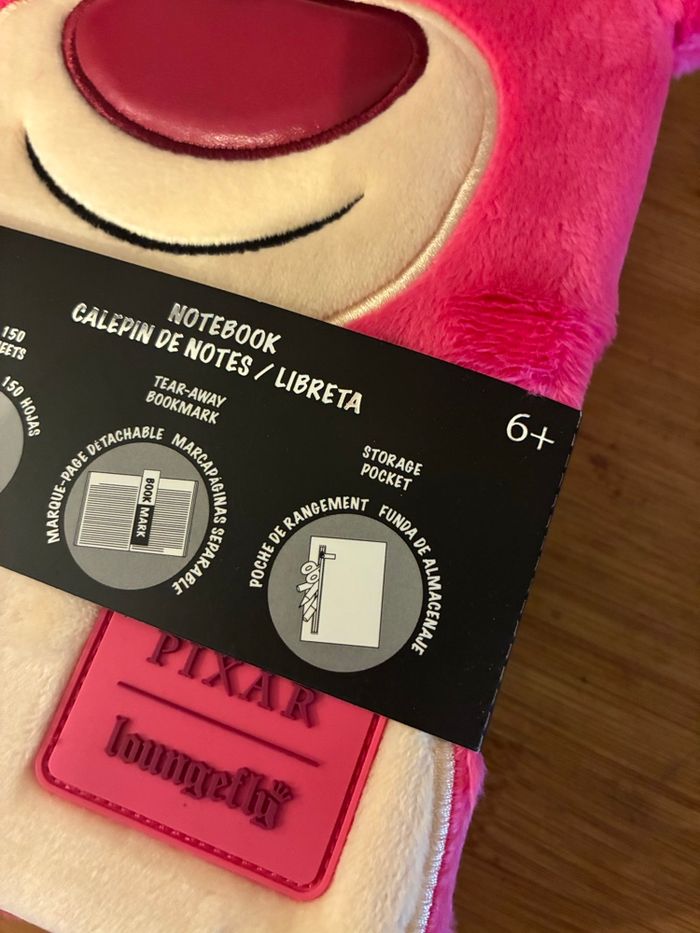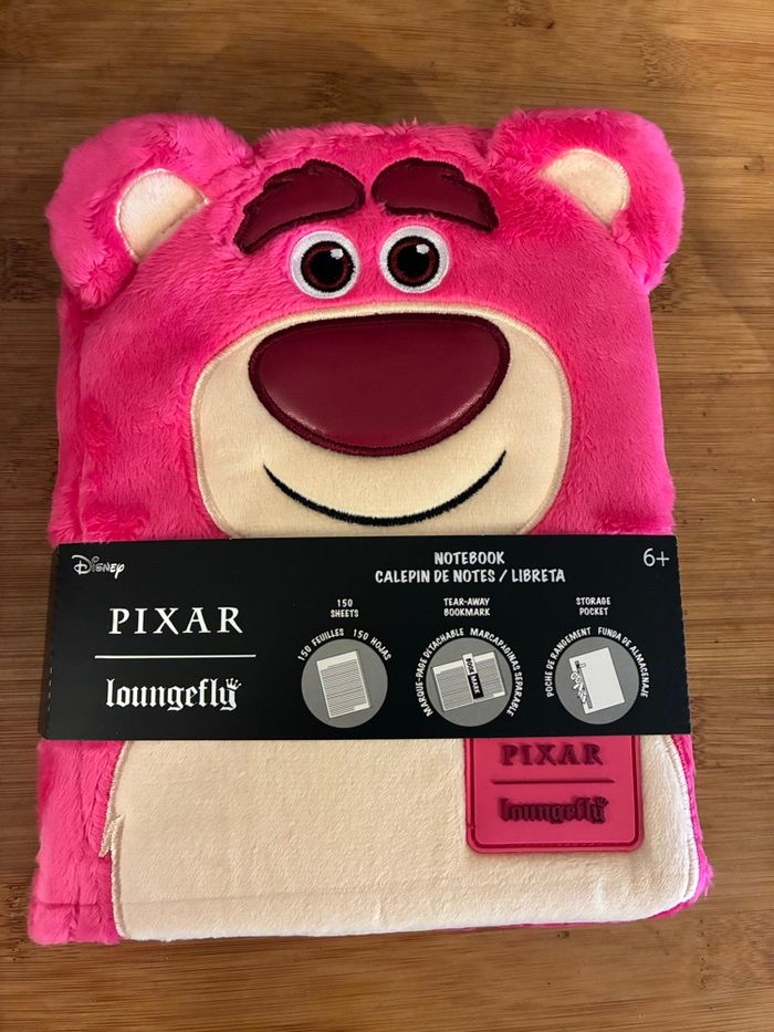 Cet ours en peluche est monstrueusement mignon ! Emmenez cet ami pelucheux dans votre prochaine aventure avec le journal en peluche Loungefly Toy Story Lotso. Sur le devant, Lots-o'-Huggin' Bear prend forme avec des détails en peluche douce et des traits du visage brodés. Tenez-le près de vous et vous êtes sûr de sentir le parfum de fraise caractéristique de son nez ! Au dos, une fraise brodée accompagne une poche zippée pour contenir des stylos. À l'intérieur, le carnet présente des lignes multicolores pour écrire tandis que Lotso accompagne un motif arc-en-ciel en haut de chaque page. Ne vous inquiétez pas, une fois que vous avez utilisé toutes vos notes, vous pouvez remplacer le bloc-notes à l'intérieur par une recharge de papier. Ce carnet offre beaucoup d'espace pour noter votre prochain projet et constitue le journal idéal pour les enfants dans l'âme.
