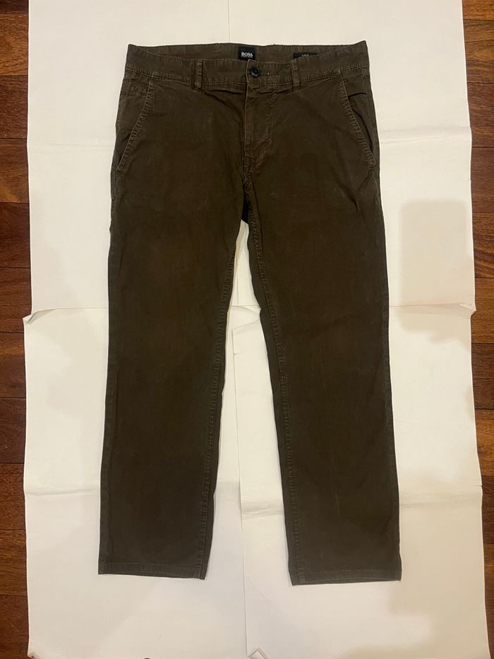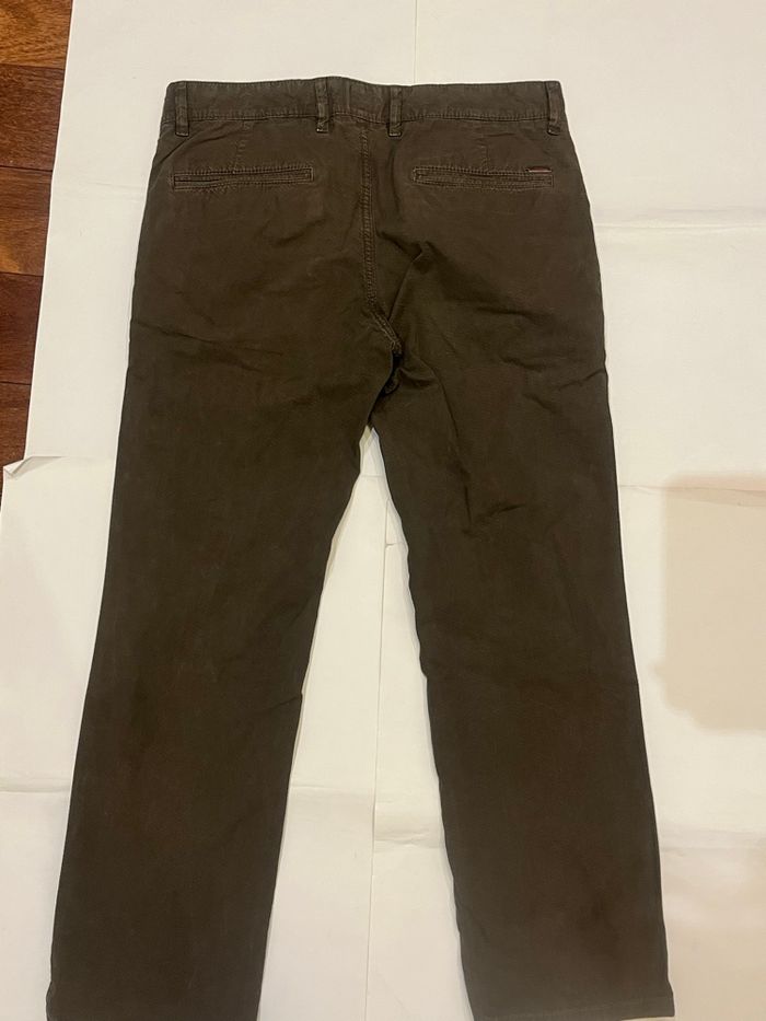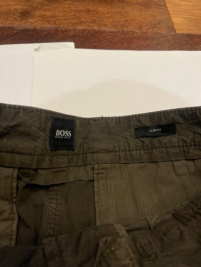 • Pantalon vert foncé kaki avec poches. Slim fit • hugo boss, pas d’étiquette de taille donc merci de vérifier les mesures • en bon etat , quelques traces voir les dernières photos • mesures: 39cm à la taille,87cm de longueur,58cm entrejambe