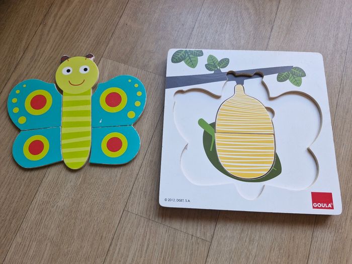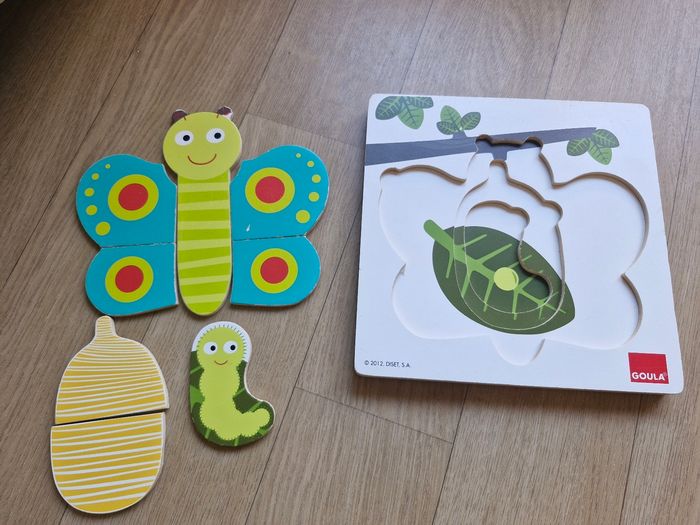 - puzzle Goula en bois, en thème papillon, à 3 épaisseurs