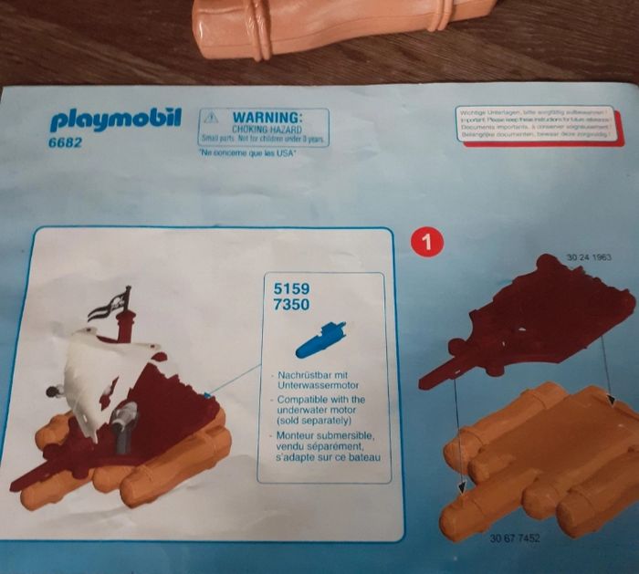 Je vends le set Playmobil 6682 - Radeau et pirates. - Type de produit : Figurines - Marque : Playmobil - Gamme / Licence : Pirates - Référence du set : 6682 - Âge recommandé : De 4 à 6 ans - Personnages inclus : Pirate avec sabre Lot presque complet (il manque une épaulette verte). En bon état sauf la voile et une épée (comme sur les photos). Vendu avec la notice mais sans la boîte. Des heures d'amusement avec ce set Playmobil ! N'hésitez pas à me contacter pour plus d'informations.