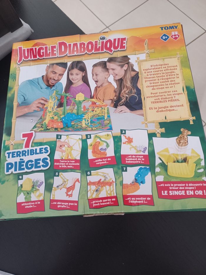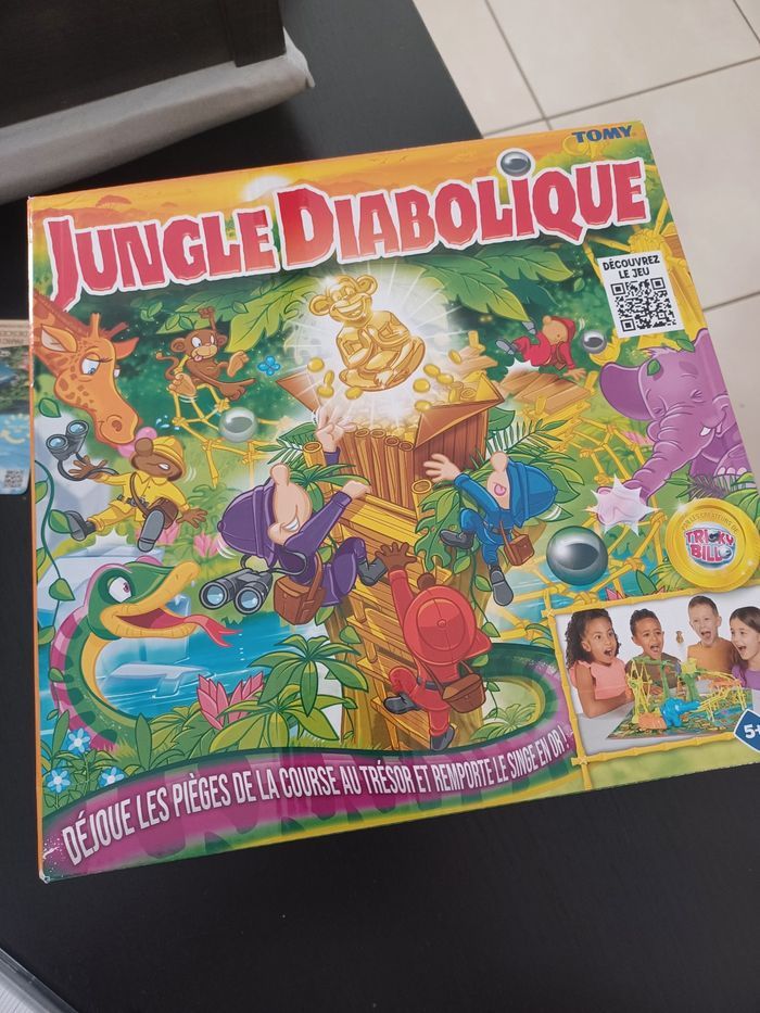 Jeu de société jungle diabolique. Neuf jamais ouvert. Bienvenue dans la Jungle Diabolique ! Pars à la recherche du trésor du singe en or mais attention aux pièges de la jungle : le sentier des éléphants, la mare aux serpents ! Deviens le plus intrépide des aventuriers avec la Jungle diabolique ! A partir de 5 ans. De 2 à 4 joueurs