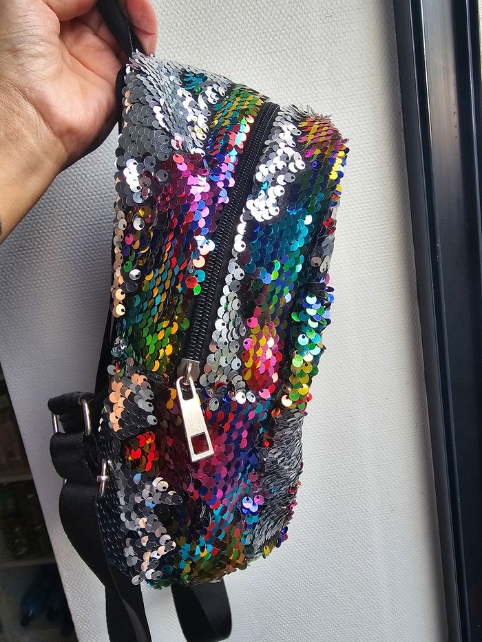 🎒✨ Mini sac à dos brillant LOL Surprise! ✨🎒 🌈💖 Craquez pour ce sac à dos ultra girly et plein de peps ! Recouvert de sequins arc-en-ciel qui changent de couleur selon la lumière 🌟, avec une adorable poupée LOL Surprise brodée à l'avant 😍. 💼 Idéal pour : L’école 🏫, Les sorties 💃 Ou simplement briller de mille feux ✨ 🎀 Bretelles réglables ✔ 🖤 Dos et fond en simili cuir noir ✔ 🧵 Fermeture zippée solide ✔ 🧸 Format compact parfait pour les enfants (ou les grands enfants 😉) 🛍️ Offre-toi (ou à ta mini fashionista) ce sac unique ! 💁‍♀️ 📦 Envoi rapide & soigné sous 48h (hors week-end → dépôt le lundi) 🏡 Maison propre, non fumeur, sans animaux