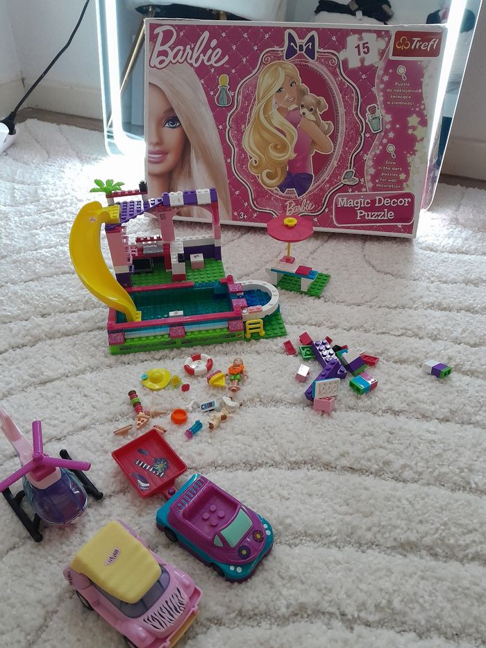 Lot BARBIE lego, puzzle phosphorescent et boîte lego dots