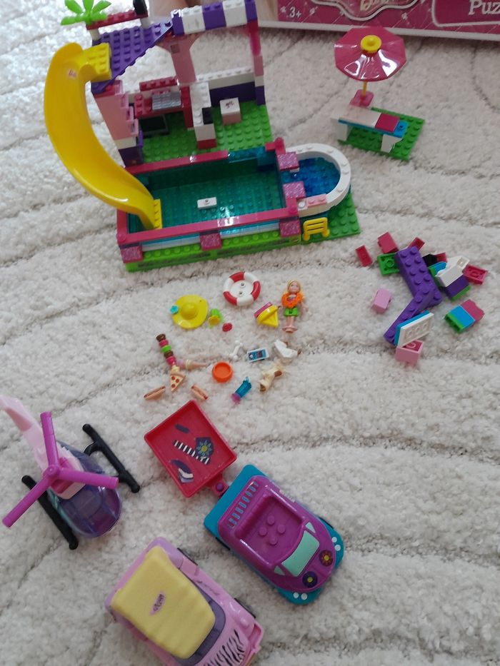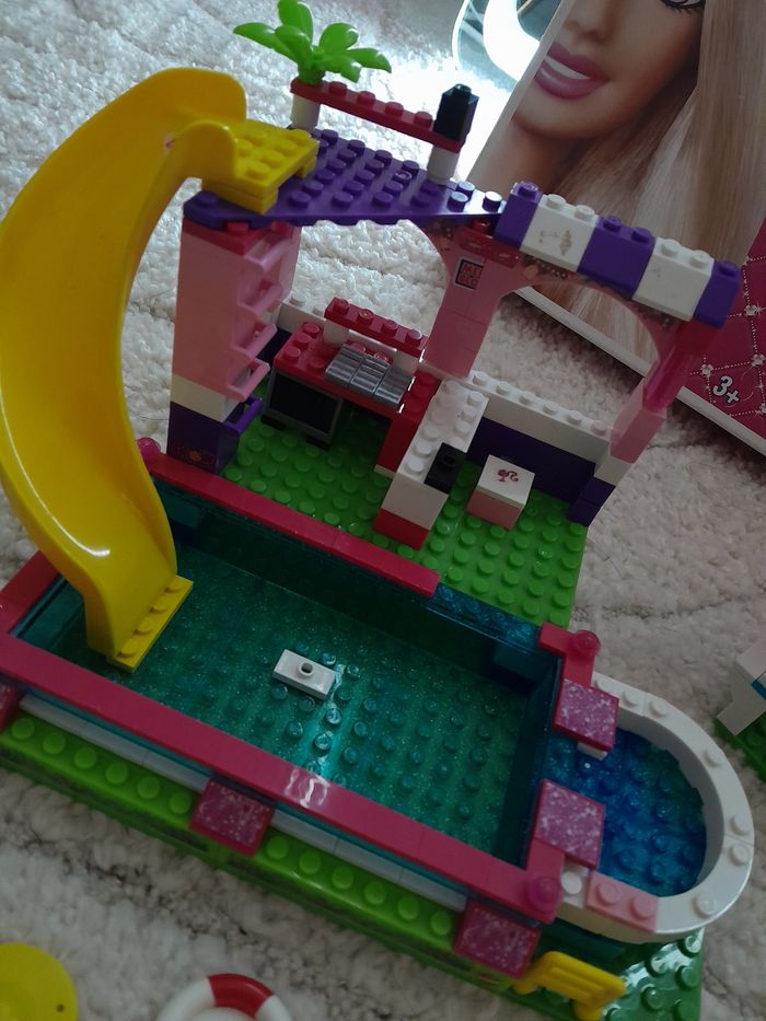 Lego comme sur la photo avec notice et petites voitures manque peut-être QQ pièces par rapport à la notice mais il y a tout ce qu il y a sur la photo+ puzzle phosphorescent deco barbie ( boite légèrement abîmée) et boîte lego dots pour faire 1 ou 2cadres. Perdu le 3
