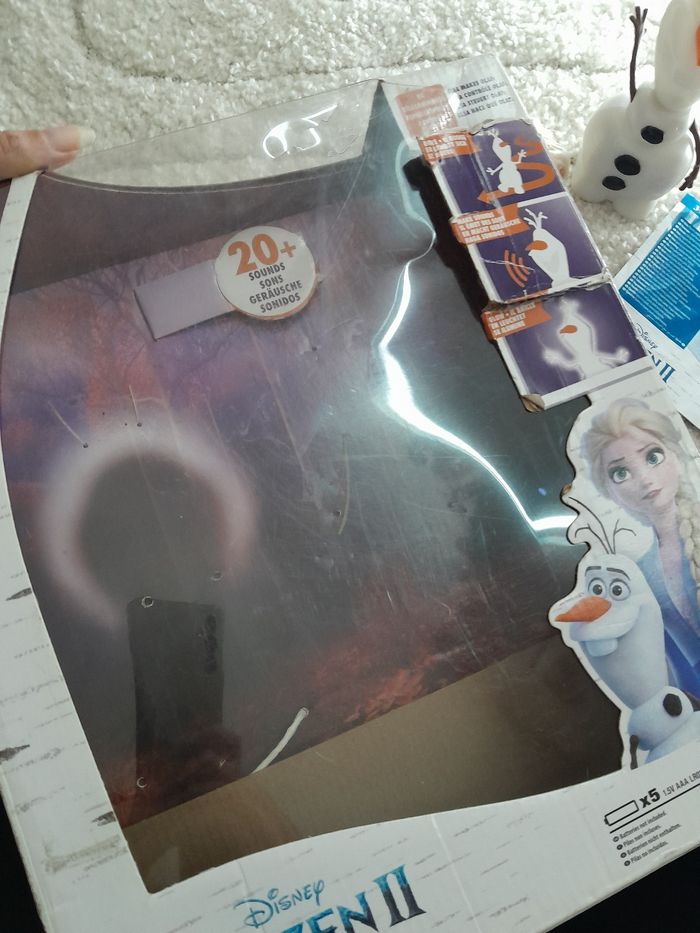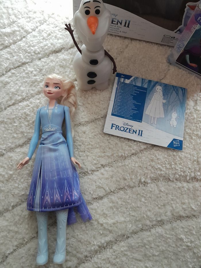 Elsa et Olaf interactif son et lumière et se déplace quand Elsa lève le bras. Avec Boite un peu abîmée et rayé. Donne petit puzzle