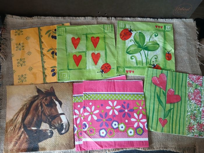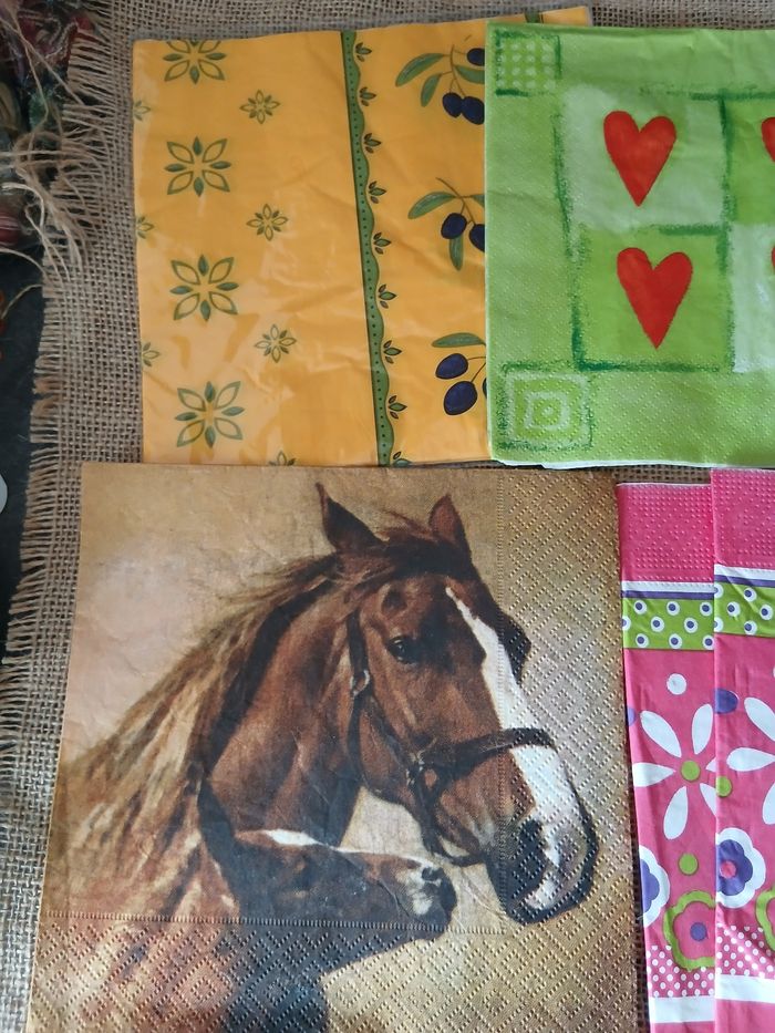 Lot de 7 serviettes en papier diverses et variées chevaux coccinelle fleurs... 1euro le lot. D'autres lot de serviettes en papier, perles, pompons boutons biais tissu ruban de dispo ds mon dressing n'hésitez pas à jeter un coup d'œil ou à me demander