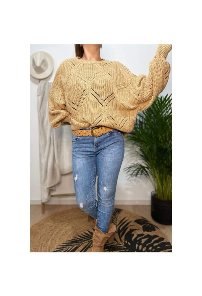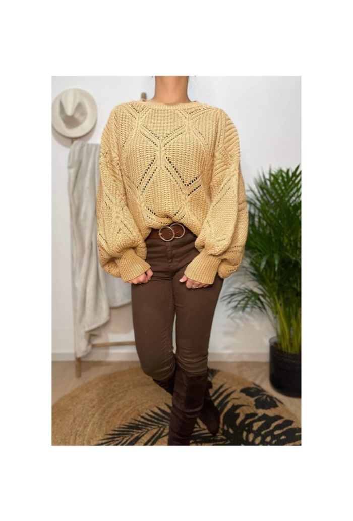 Magnifique pull brun 🤎 en maille ajourée à l’avant ✨