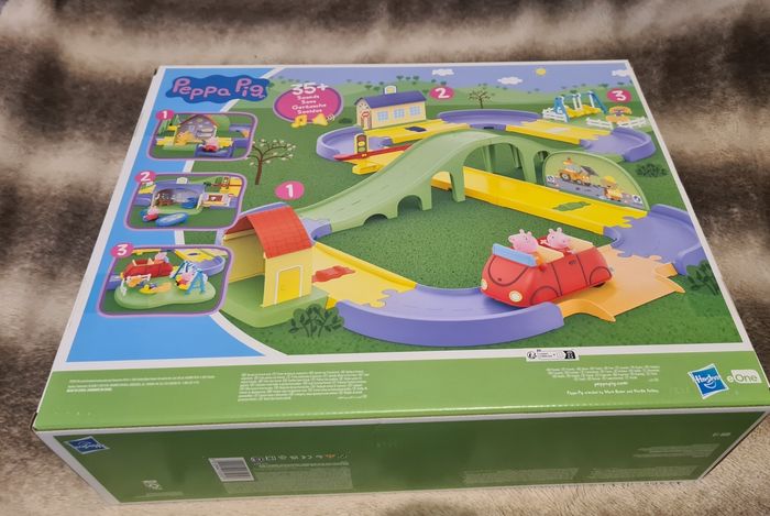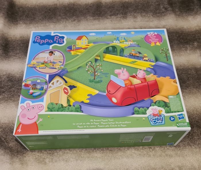 Peppa Pig, le circuit en ville de Peppa neuf jamais ouvert, inclus une figurine de Peppa ainsi qu'un véhicule avec Maman Pig.
