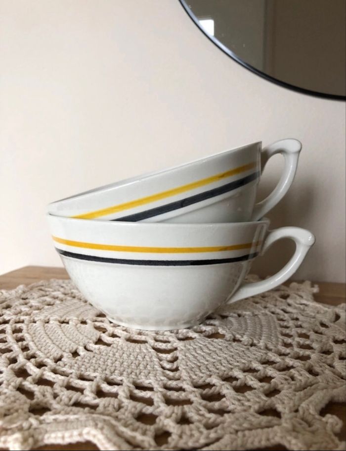 Lot 2 tasses forme bol à liserés - vintage