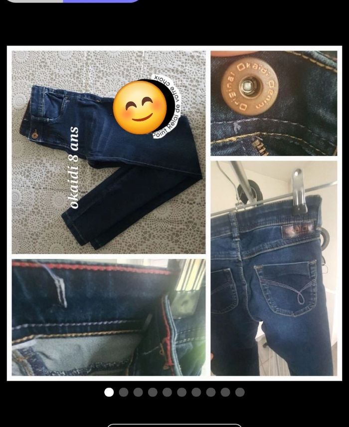 - jeans okaidi bleu foncé très bon état etiquette découpés (4€50)