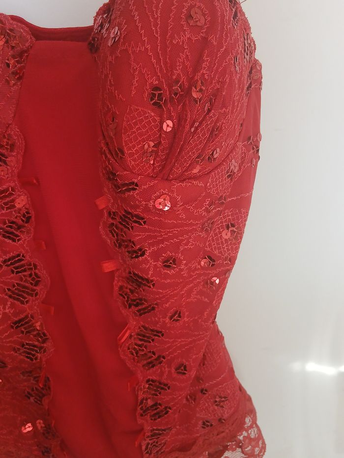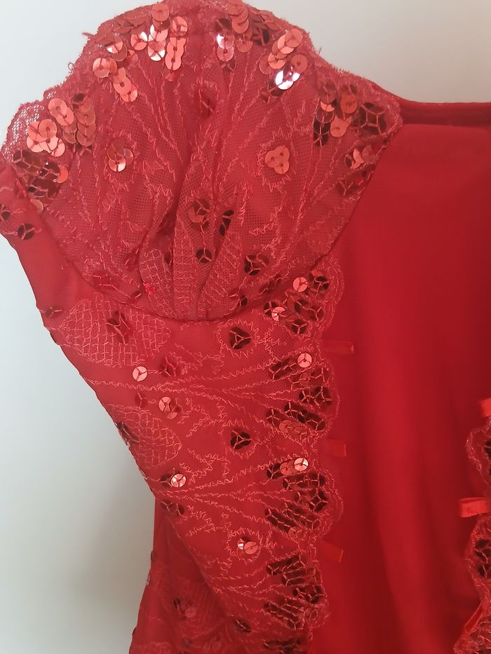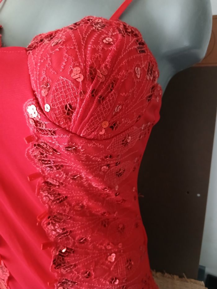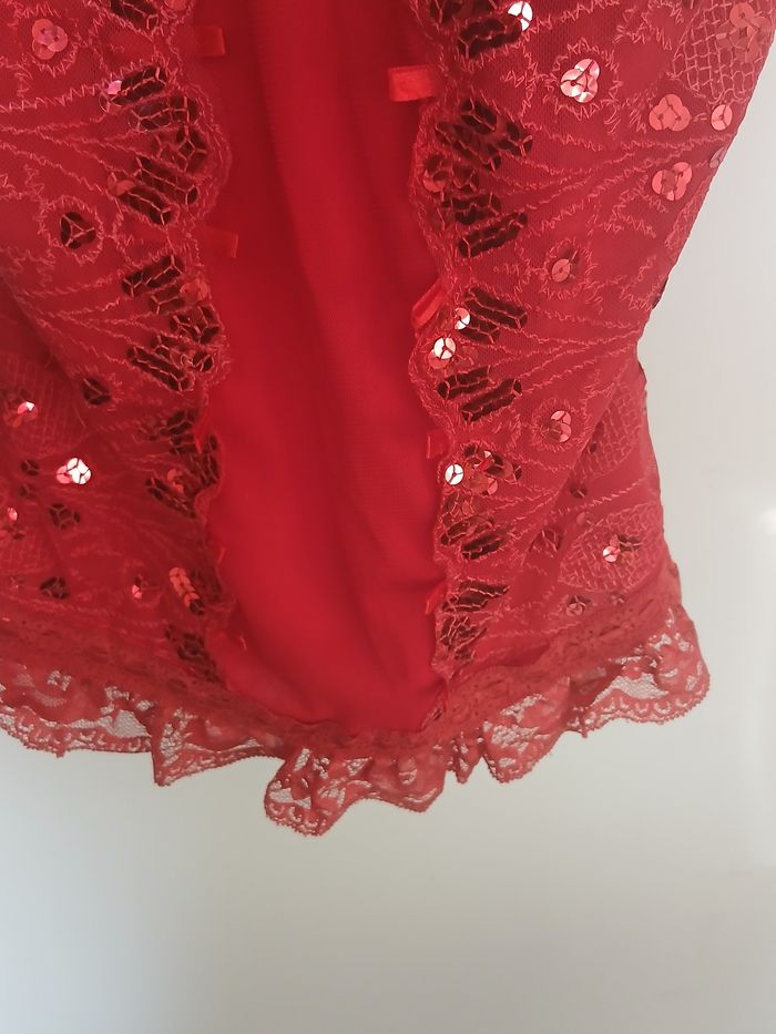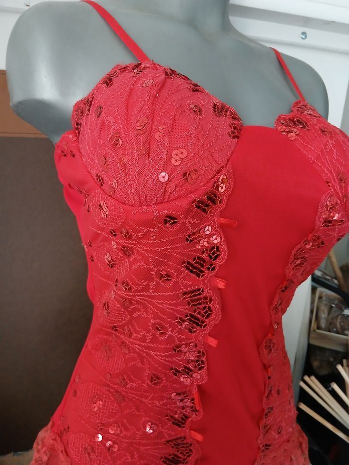 Corset paillettées et dentelle rouge taille M - photo numéro 1