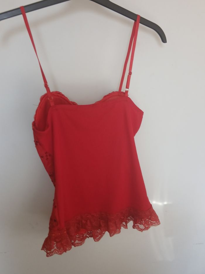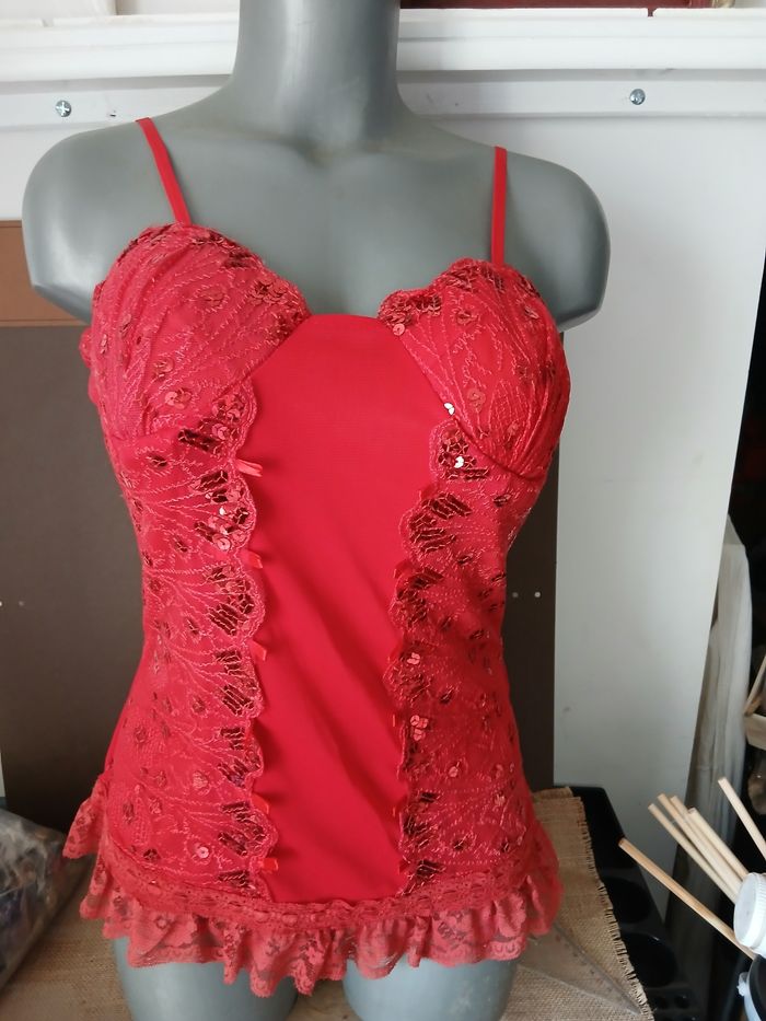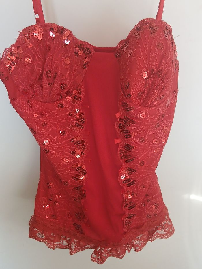 Corset paillettées et dentelle rouge taille M. Manque le ruban rouge