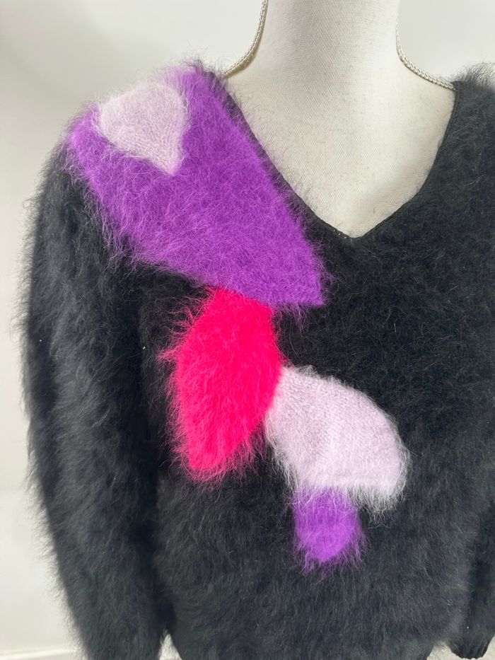 Pull en angora noir rose violet mauve Anny Blatt Vintage T42 XL - photo numéro 2