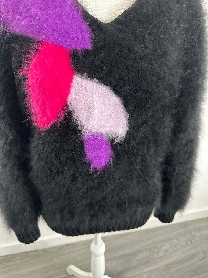 Pull en angora noir rose violet mauve Anny Blatt Vintage T42 XL - photo numéro 3