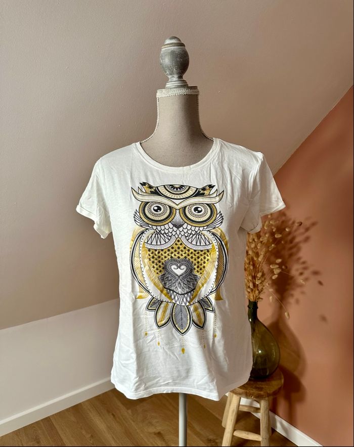 💜 Teeshirt blanc et doré à motif chouette FB sister New Yorker taille M 💜 - photo numéro 5