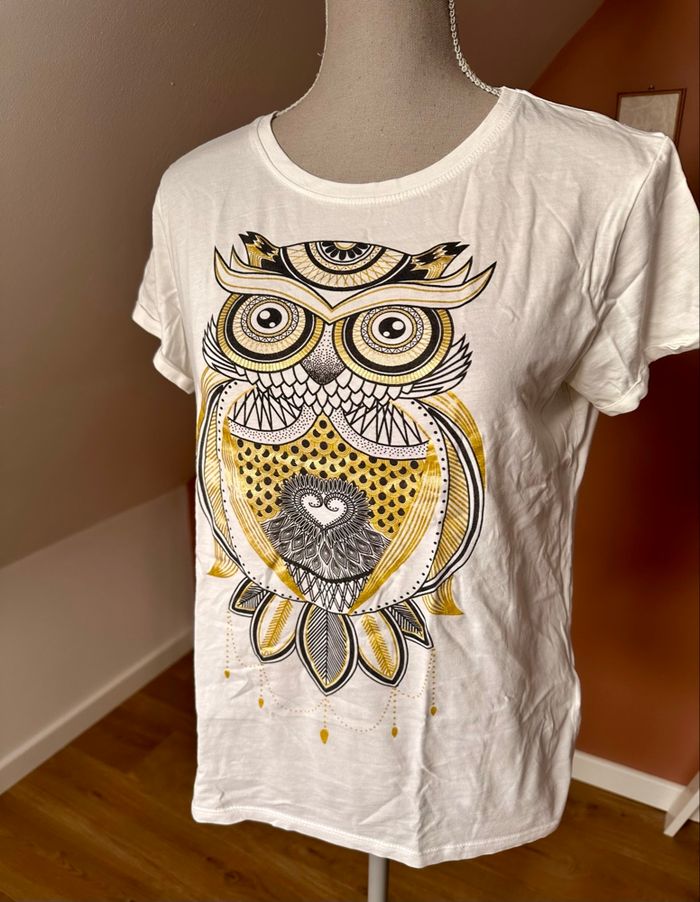 💜 Teeshirt blanc et doré à motif chouette FB sister New Yorker taille M 💜