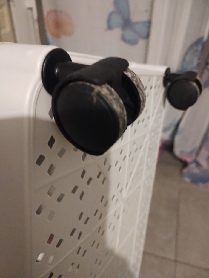 En plastique blanc Avec crochet et roulettes Mesure sur les photos Déjà utilisé Sera très bien emballé Sera démonté pour l envoie
