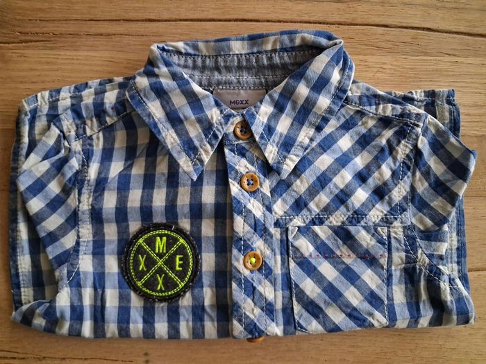 Chemise garçon manches longues Mexx 9-12 mois 74cm État comme neuve porté 1 fois Carreaux bleu et blanc Remise en main propre sur Dax Envoi possible