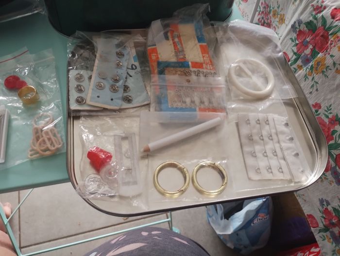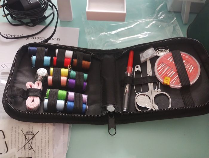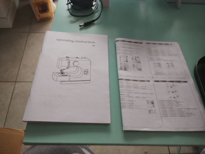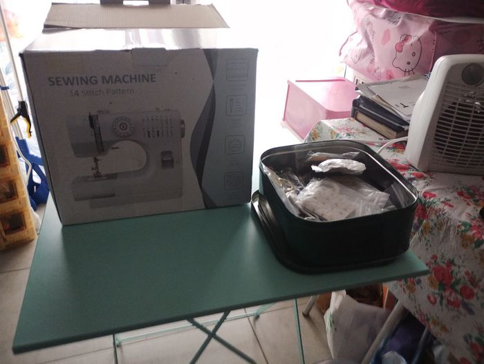 Il y a Une machine a coudre avec sa petite table Notice, chargeur, pédales Livre une grosse boîte de boutons Il a d autre accessoires avec voire photo Pour plus de photos en mp Machine a coudre neuf Sera très bien emballé Mini machine a coudre pour débutant