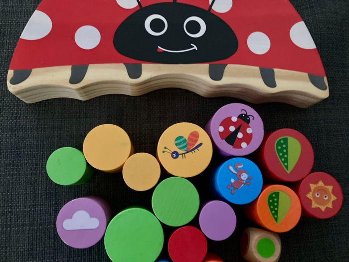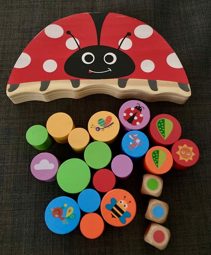 Contenu: Coccinelle, 3 dés et 18 cylindres de couleurs
