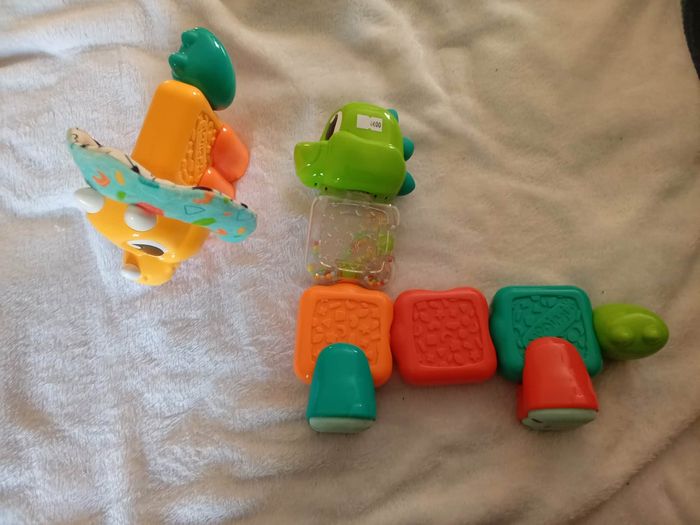 Le set Dino Modimi est un jouet d'éveil idéal pour stimuler les sens et l'imagination de votre enfant, compatible avec la gamme Modimi L'ensemble de jeu Dino de Modimi est un jouet unique qui invite les enfants à construire et à jouer avec des couleurs joyeuses. L'ensemble Dino comprend un tissu grinçant, un bloc hochet et des pièces douces au toucher. Il dispose d'un système de construction flexible qui permet aux enfants de libérer leur créativité.