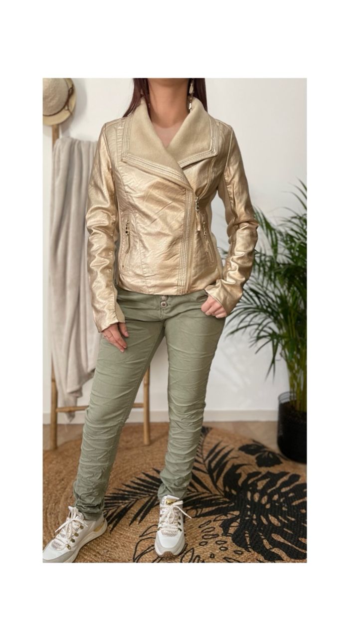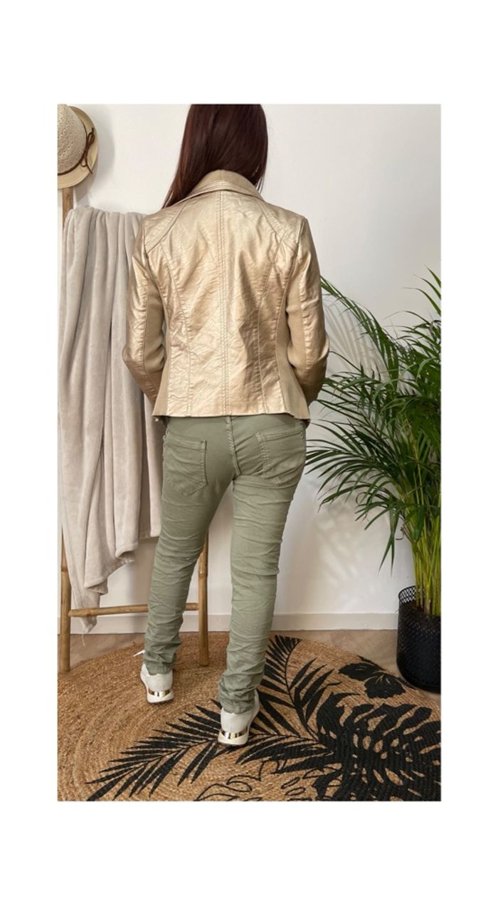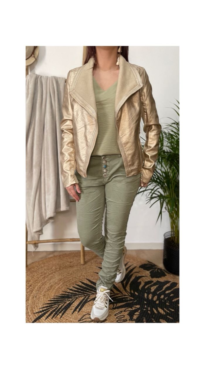 Grand col chic, matière stretch sur la taille, le col et l’arrière des manches 👉 confort