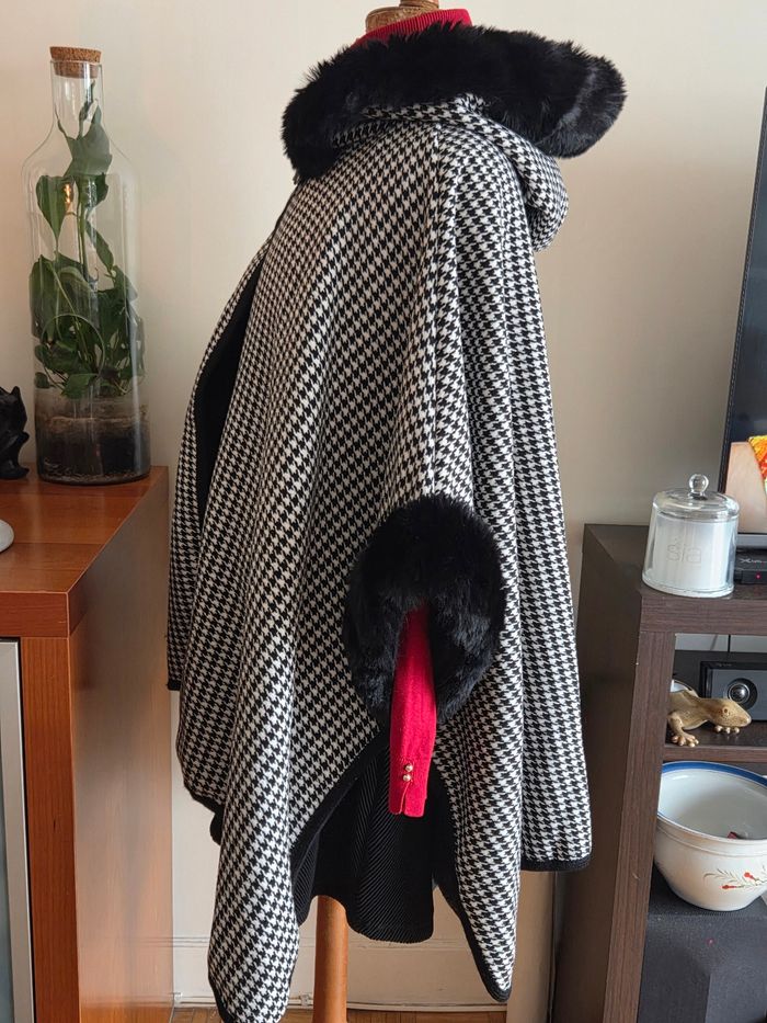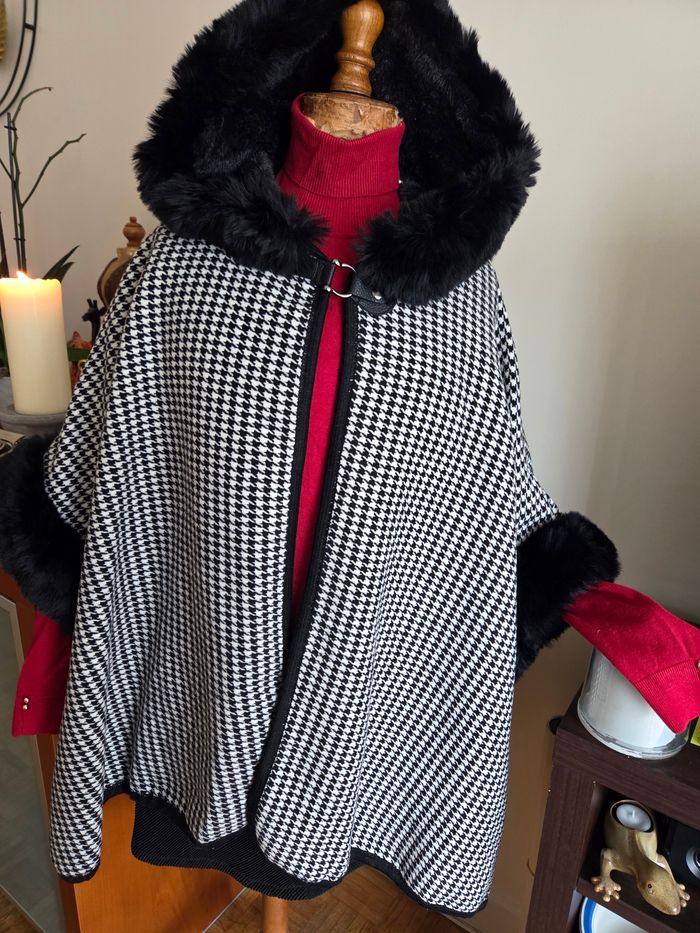 Manteau cape Pied de poule. Vicky. Neuve. TU