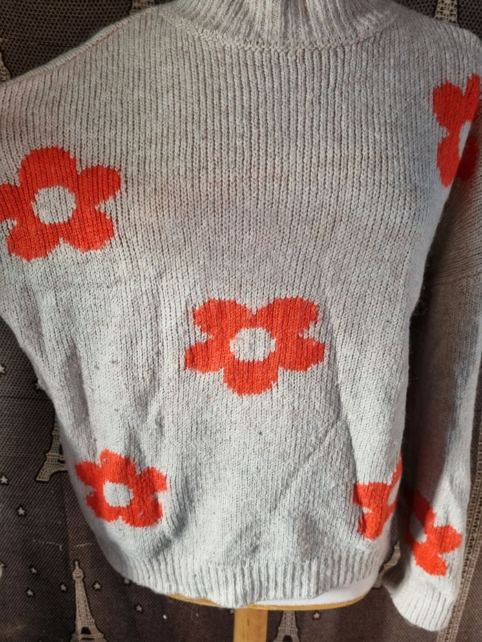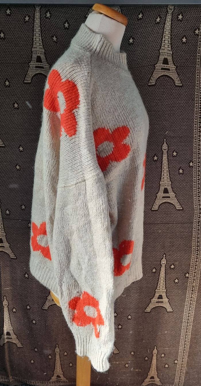 Pull beige à motifs fleurs taille XL - photo numéro 5