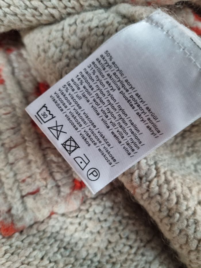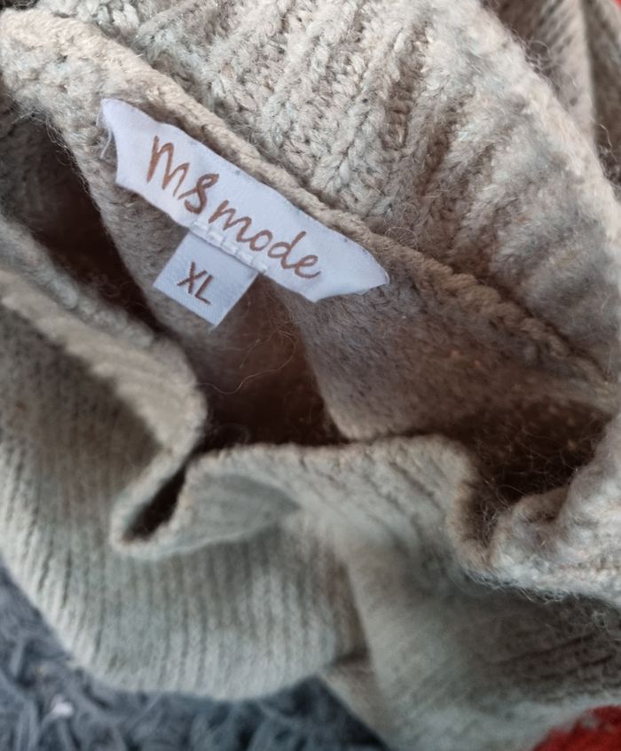 Pull beige à motifs fleurs ,taille XL marque MS Mode, longueur 63cm, largeur 62cm, longueur épaule à aisselle 26cm, largeur aisselle à aisselle 69cm, longueur manche 46cm, quelques peluches sinon très bonne état.