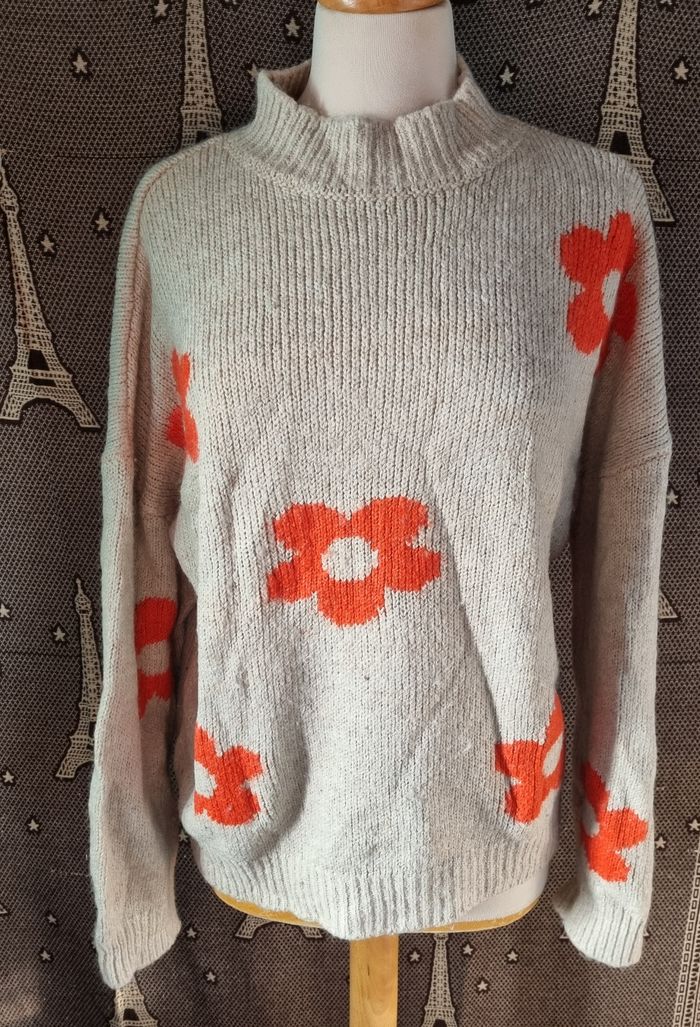 Pull beige à motifs fleurs taille XL - photo numéro 2