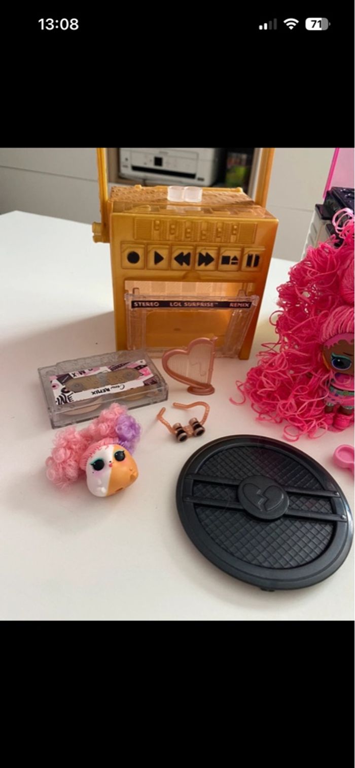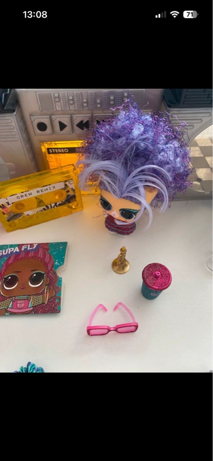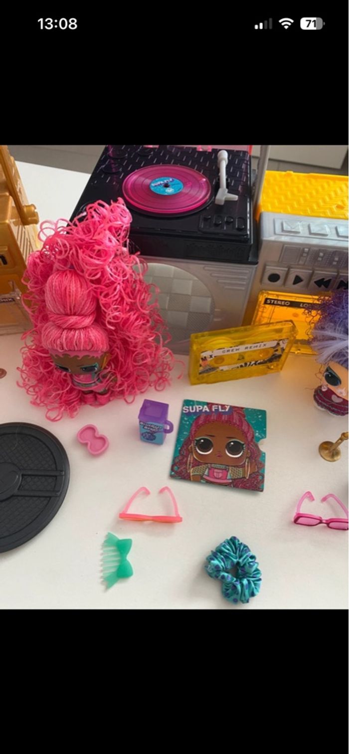 Poste de radio LOL Remix Inclus : - 2 Remix Pets : Squeak Minor avec ses accessoires (ultra rare vendu sans Major Squirrel mais nous avons la harpe) + Disco Doggie avec ses accessoires - LOL Twisted Sis avec accessoires mais il manque sa brosse et ses barrettes - LOL Supa Fly avec accessoires mais il en manque : cerise, élastique avec perle En excellent état
