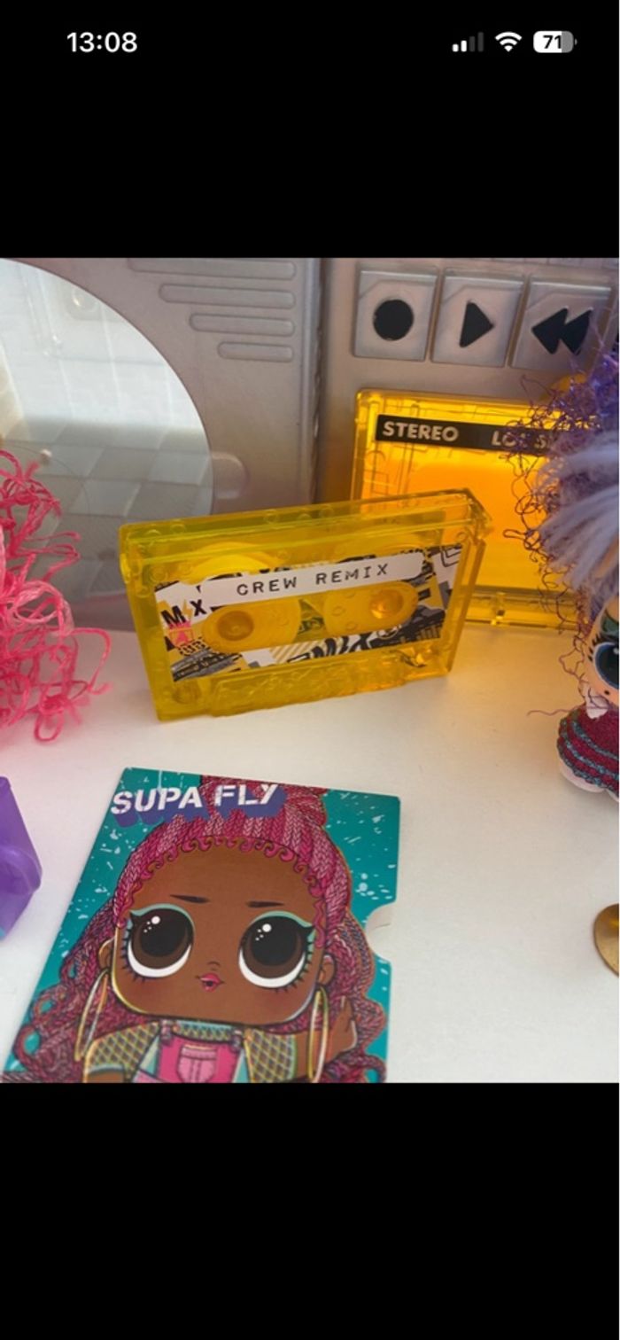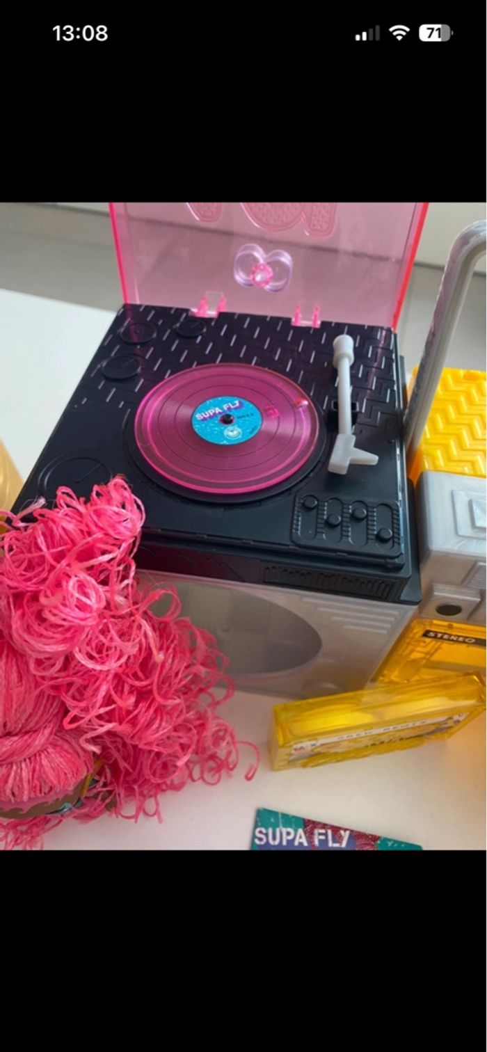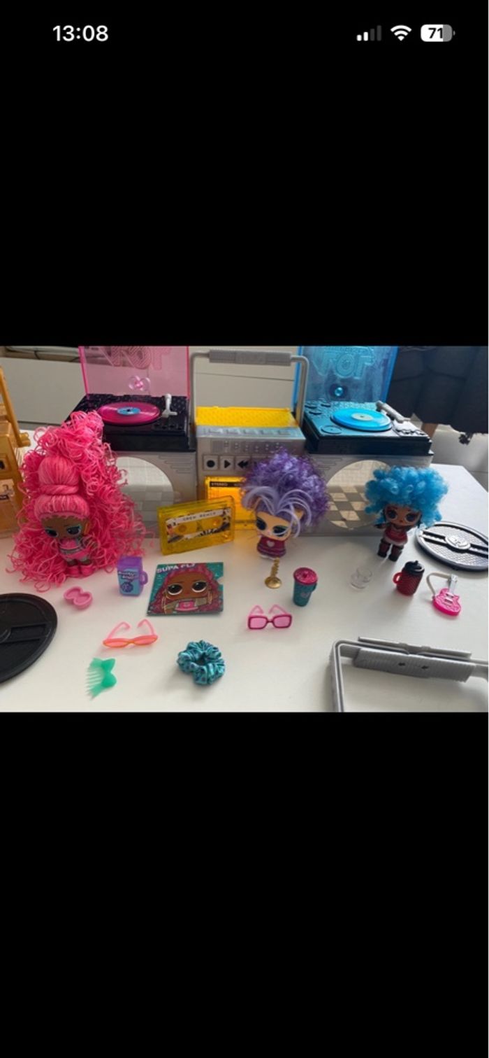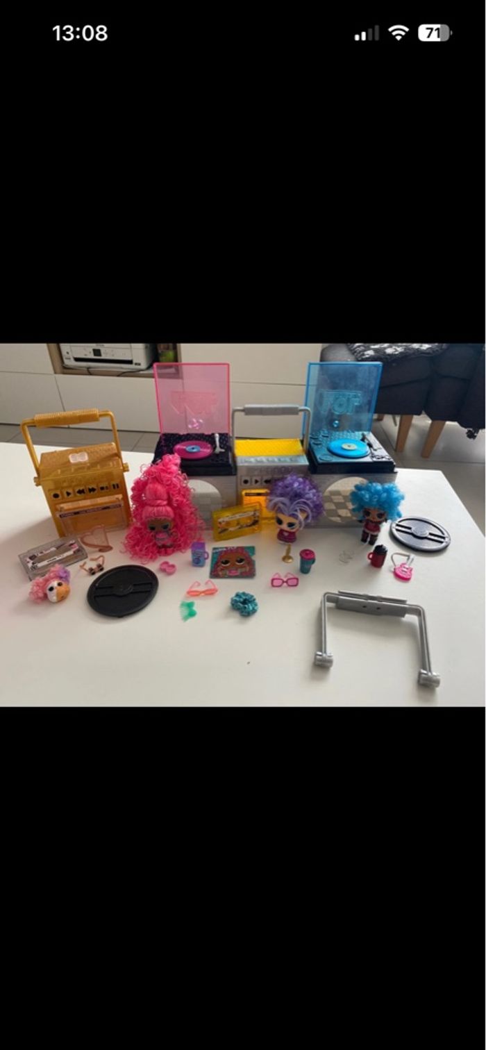 Poste de radio LOL Remix Inclus : - 2 Remix Pets : Squeak Minor avec ses accessoires (ultra rare vendu sans Major Squirrel mais nous avons la harpe) + Disco Doggie avec ses accessoires - LOL Twisted Sis avec accessoires mais il manque sa brosse et ses barrettes - LOL Supa Fly avec accessoires mais il en manque : cerise, élastique avec perle En excellent état