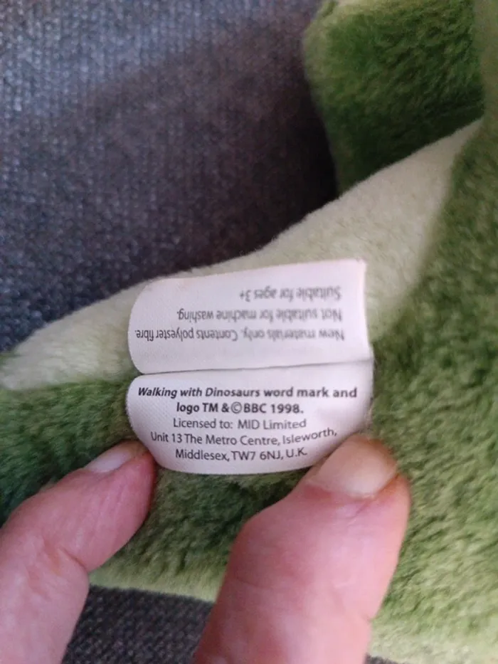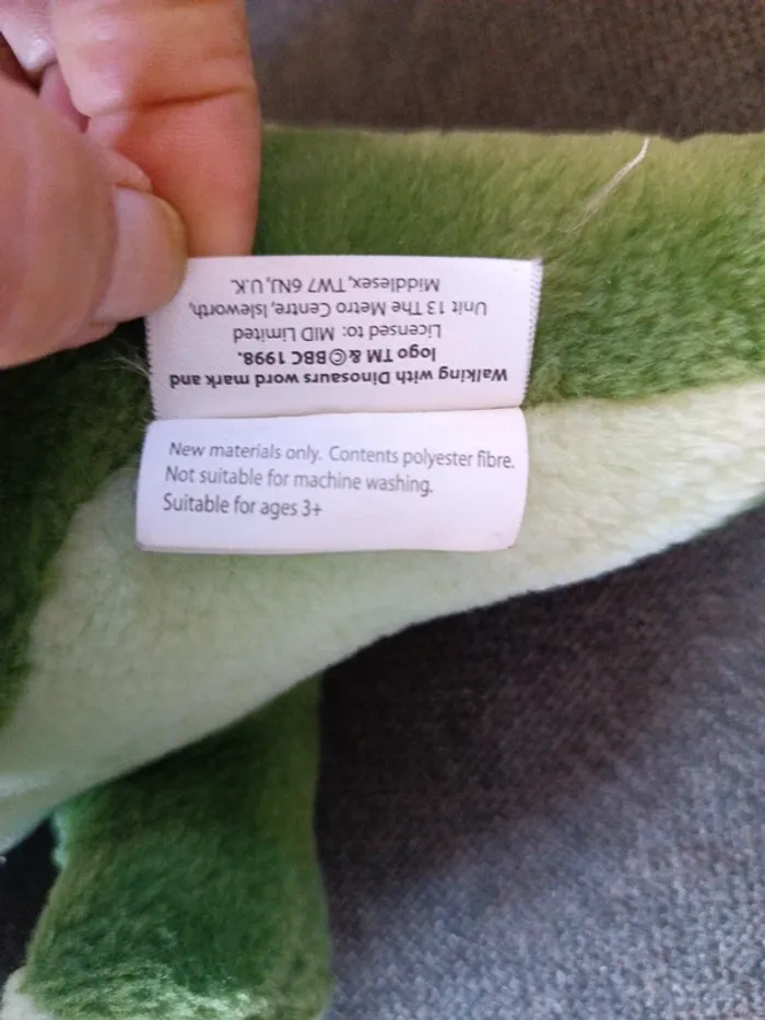 Peluche dinosaure vert. Walking with dinosaure. Longueur 48 cm. Hauteur 23 cm. 100% polyester. TBE - photo numéro 7