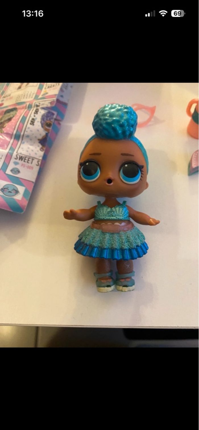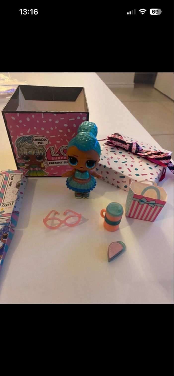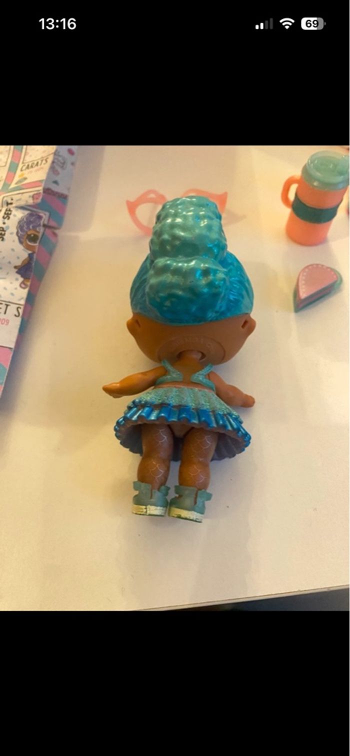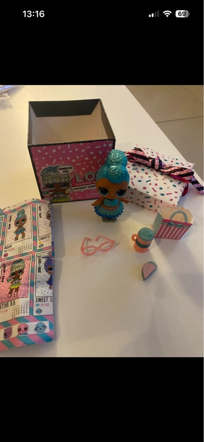 LOL Aqua Fabuleuse petite fille LOL de la saison 1 Gamme Present surprise - birthday club Elle représente la pierre de naissance de mars, l’aigue-marine En très bon état