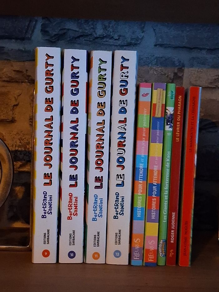 Je ne vends pas les Gurty seuls. En revanche, il est possible de modifier les livres qui les accompagnent. Lot à 45 € (31.5 € avec code réduction) pour 9 livres Le journal de Gurty Bertrand Santini ✏️ La revanche de Tête de Fesses - Tome 9 Très bon état ✏️ Vacances en Angleterre - Tome 10 Très bon état ✏️ Moi j'adore être heureuse - Tome 11 Très bon état ✏️ Vacances à Paris - Tome 12 Très bon état Editions Sarbacane ✏️ Shylanders Universe Les Giants et la forteresse de Kaos Bon état Edition Hachette Jeunesse La bibliothèque verte ✏️ Histoires pour attendre et Petits jeux pour patienter ✏️ Histoires pour attendre et Petits jeux pour patienter - Princesses et chevaliers Edition : Fleurus Neufs. Prix éditeur : 7.9€ le volume Les livres ci-dessous sont offerts pour l'achat de l'annonce ✏️ Le mammouth et la chataigne Jean-Côme Noguès Editions Safrat - Lire c’est partir Très bon état ✏️ Le lévrier du Pharaon Roger Judenne Editions Lire c’est partir Très bon état Livraison acceptée Ou remise en main propre possible sur Paris, La Défense, Bibliothèque François Mitterrand, Gare de Lyon, Etampes
