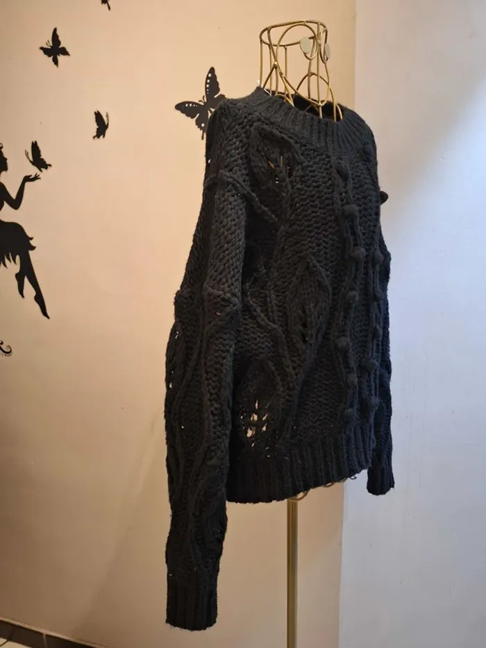 Pull noir en grosses mailles - longueur 53 cm - coupe droite - matière très épaisse & très chaude - taille unique idéale pour les tailles S & M ou 36 & 38 - état sans défaut ps : je ne fais pas de photo portée #pullnoir #pullchaud #pullhiver