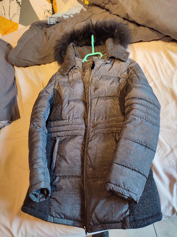 Je vends cette belle parka/doudoune Kaporal, en parfait état 👌 (peu portée car un peu petite pour moi) Épaisse et bien taillée, elle tient super chaud. Deux grandes poches ventrales Fourrure capuche toute douce avec possibilité de l'enlever si besoin Couleur gris/noir et bi matière Taille M (38) N'hésitez pas à me contacter si vous avez la moindre question ☺️