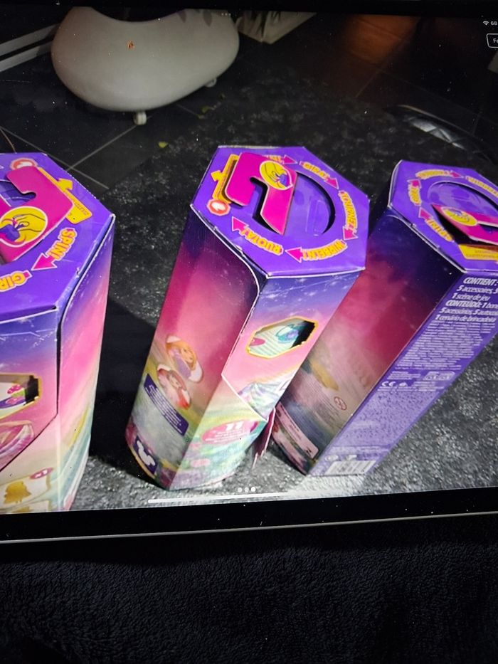 Les enfants vont ensuite faire tourner l'emballage pour révéler un sachet mystère à chaque tour, 5 en tout ! Les sacs contiennent 10 surprises, dont des accessoires de mode et des autocollants.