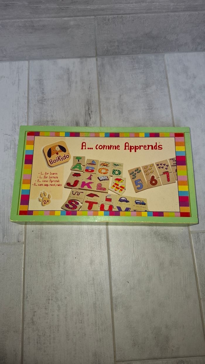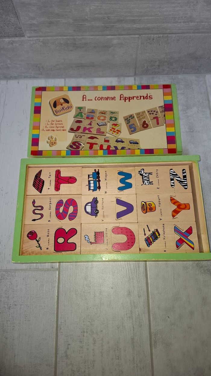 Vend boîte en bois pour apprendre l'alphabet mais également les chiffres et tous sa a l’aide de puzzle.