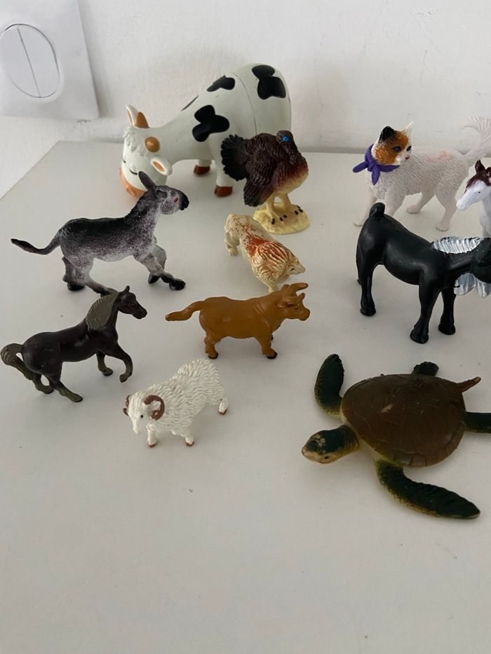• Tailles variées : du petit mouton aux grands animaux comme la vache ou la tortue.