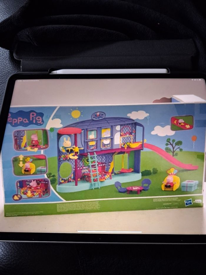 Le centre de loisirs de Peppa . Rejoins Peppa et Rebecca Rabbit au centre de Loisirs pour célèbre l'anniversaire de Peppa, il y a plein d'activités amusantes ! Les enfants peuvent placer l'une des figurines dans la piscine à balles pour entendre de la musique et des sons. Ils peuvent également faire glisser les personnages dans la luge du toboggan, faire de la balançoire ou bien les faire descendre par le poteau. Une échelle détachable permet aux enfants de faire selant que Peppa et Rebecca montent à l'étage pour redescendre par le poteau ou pour coiner les images des portraits des 2 amis. Ce coffret de jeu Peppa comprend 11 pièces dont 2 figurines (Peppa et Rebecca Rabbit). Les effets sonores nécessitent 2 piles AA/LR6 fournies à titre démonstratif. Age : 3 ans et plus