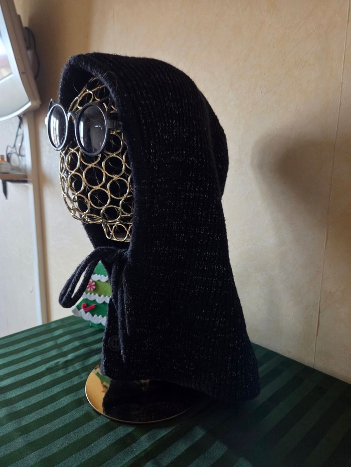 Cagoule chic. Chaude. Noir et dorée. Bel effet. Neuve. Valeur 39e. TU Neuve avec étiquette. Livrée sous blister. Même modèle en beige et dorée. Envoi sous 24h_48h 🐱 Rapide, soigné et 🎥