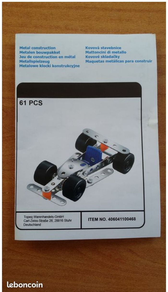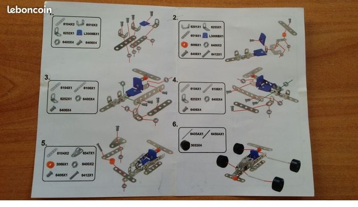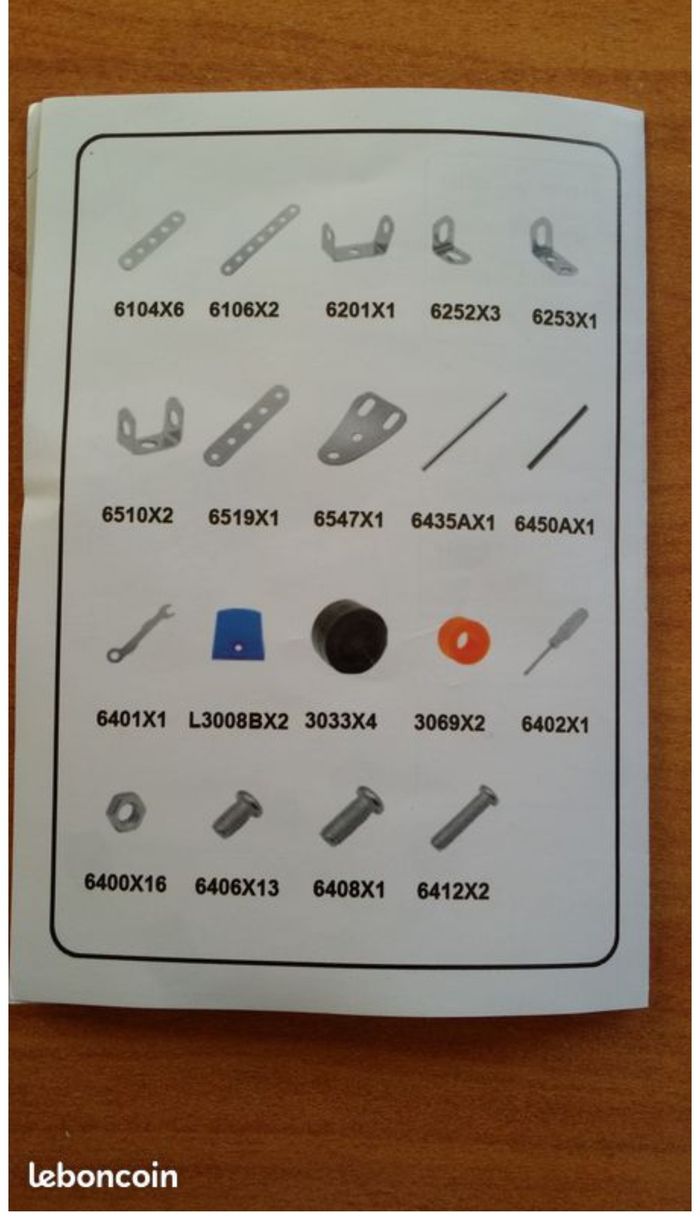 Jeu de construction en métal (mécano) de 61 pièces avec manuel de montage TRES BON ETAT