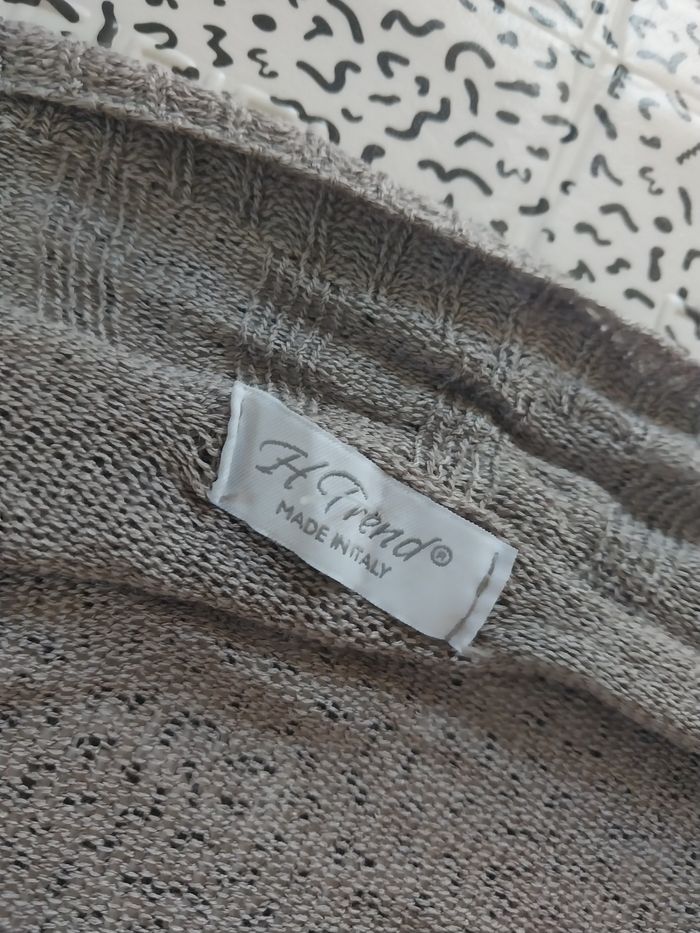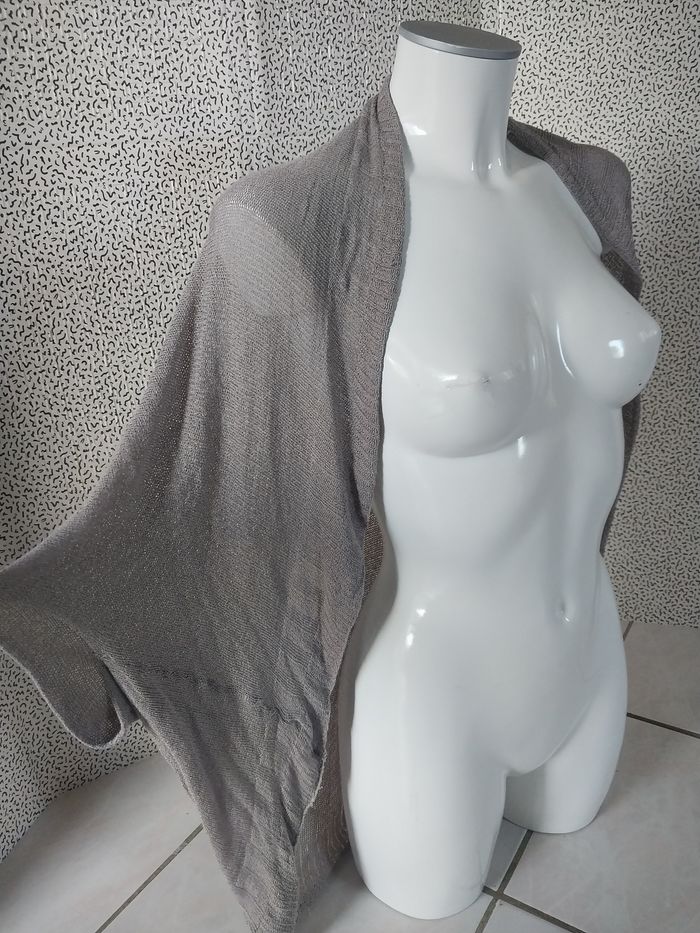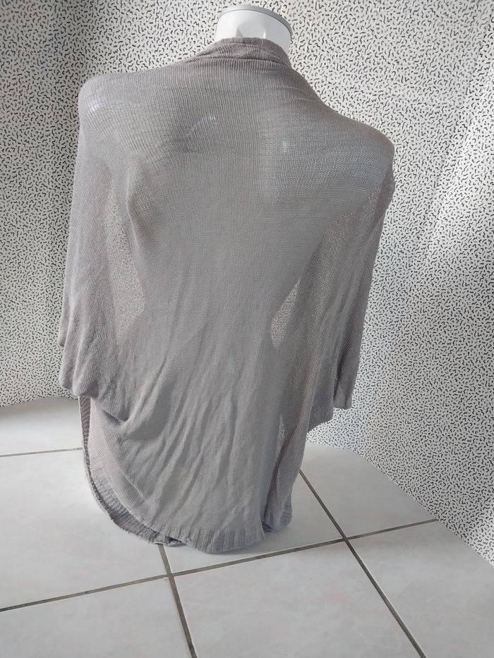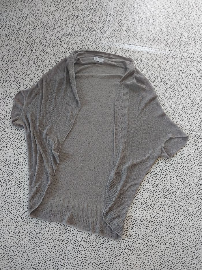 Gilet léger style boléro, couleur gris taupe, matière fluide et douce (88% viscose).