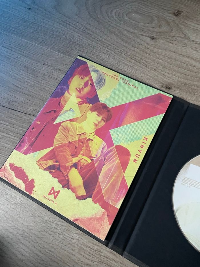 vnted et leboncoin : woosanra beebs : floraritz 📓 album the code 👥 Monsta X #woosanraMONSTAX 🗂️ version protocol terminal 📔 complet avec une pc photocard Shownu, première page Kihyun et CD hyungwon 🔎 très bon état le milieu du photobook légèrement abimé