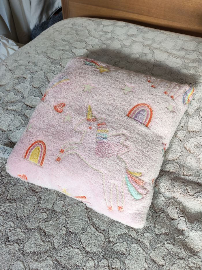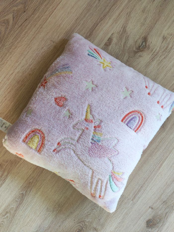 Coussin rose licorne tissu peluche