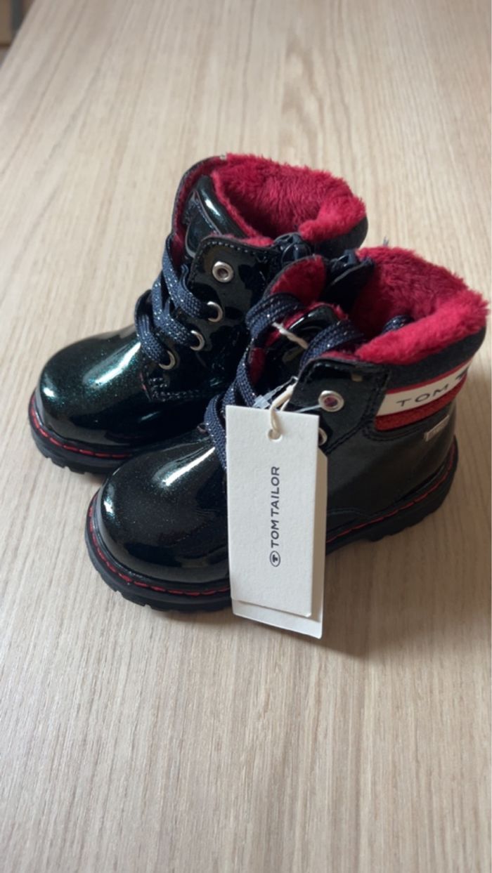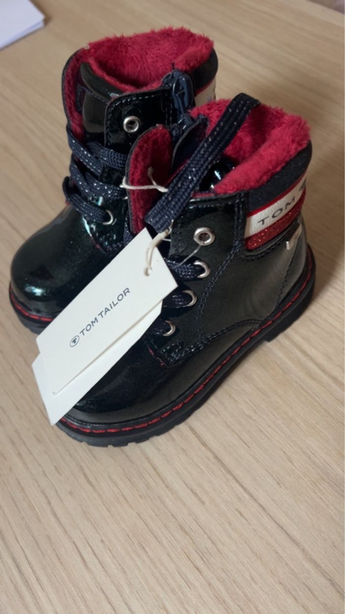Bottines bleu marine effet brillant fourré à l’intérieur,avec lacets et fermeture éclair en taille 21