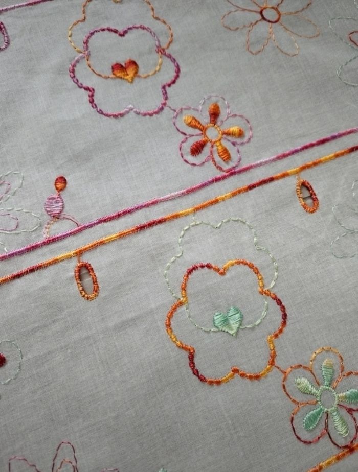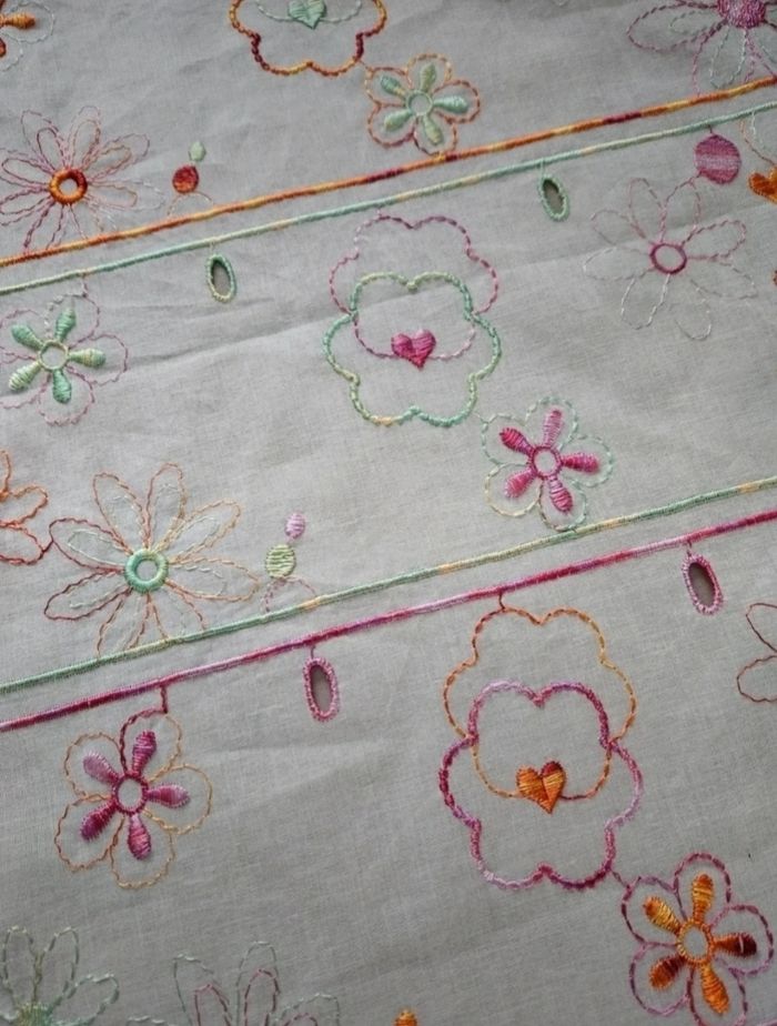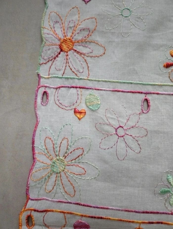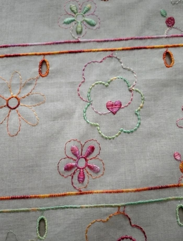 Paire de voilages/ rideaux blancs et fleuris colorés